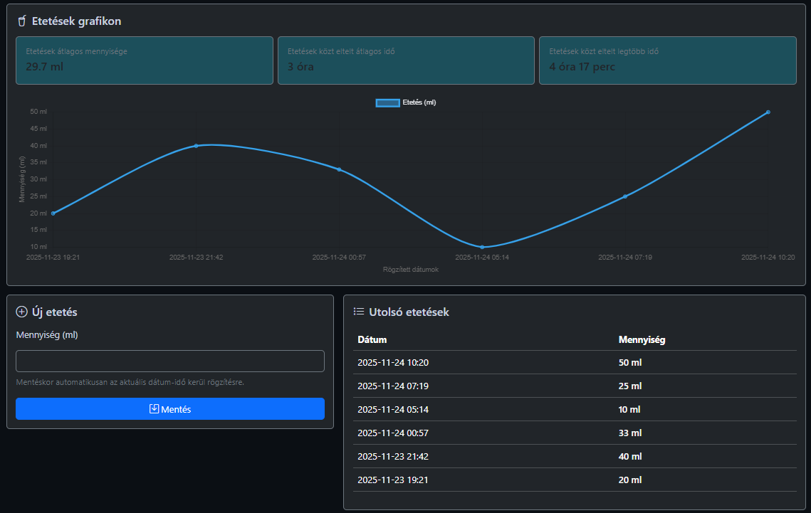 • Etetések grafikonja (ml vs idő)